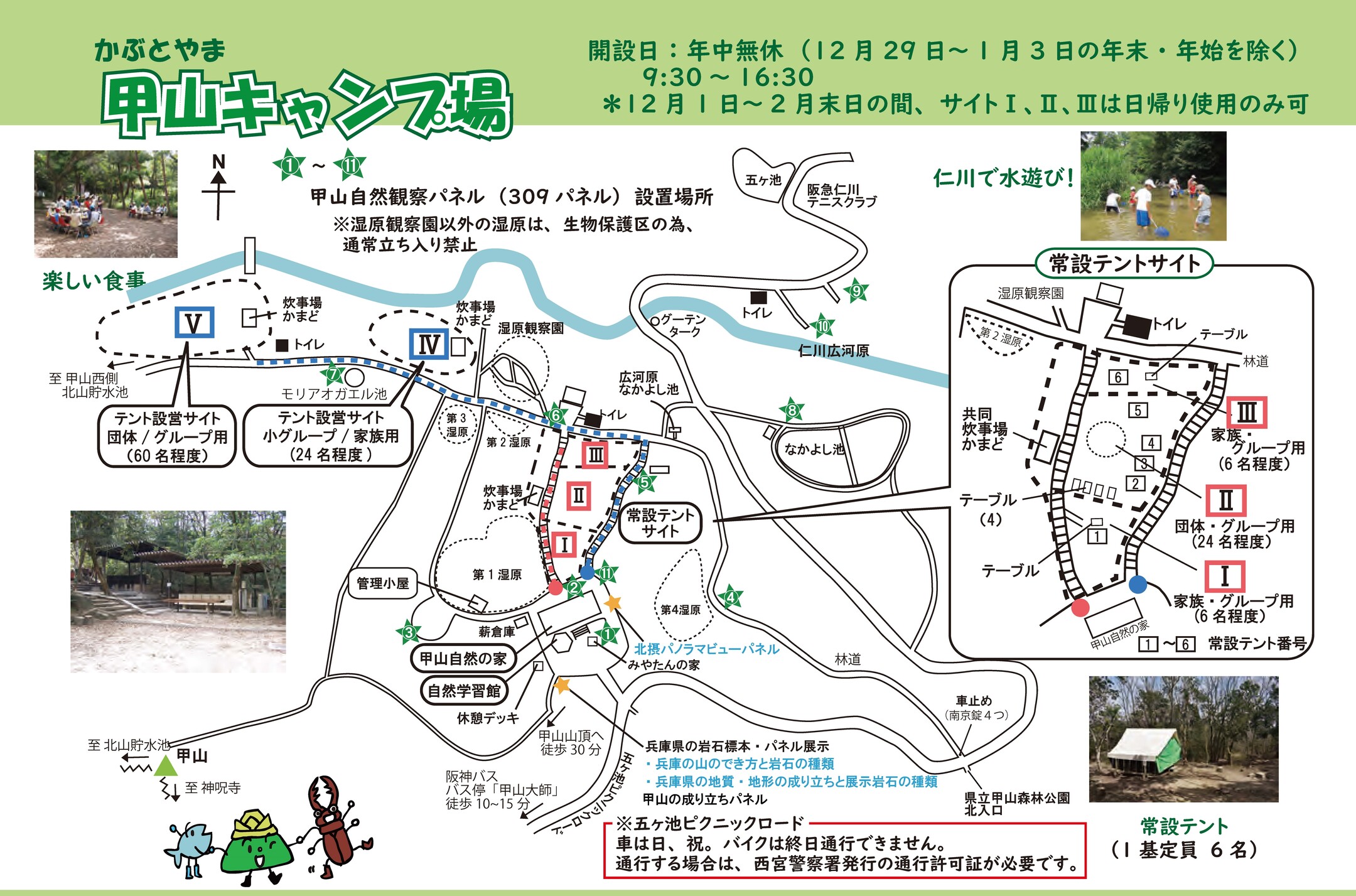 | (注)常設テント:甲山キャンプ場のT〜Vサイトにある常設テント(1基定員:6名) | |||||||||||||||||||||||