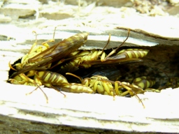 | 1月11日 木の室で越冬中のホソアシナガバチ |