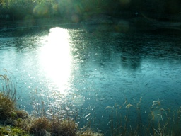 | 12月21日 寒かったこの日 一部凍ったなかよし池。 |