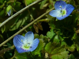 | 2月28日 春の気配。 オオイヌノフグリの花が 日当たりのいい河原に咲いています。 |
