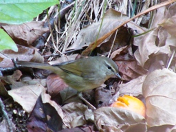 | 12月21日 落ちた柿を食べに来た ウグイス。 |
